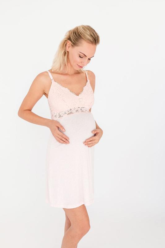 Ночная рубашка для беременных и кормящих с кружевом HAYS. Производство - Турция. Размер - S. Состав - 50% хлопок, 50% модал. Цвет - бежевый.