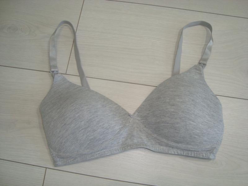 У продажу бюстгальтер від H&M, розмір бирки вказаний 75D. Бюстгальтер світло-сірого (меланж) кольору, чашка на тонкому поролоні, бюстгальтер без кісточок та каркасів. Склад: 90%-бавовна, 5%-віскоза, 5%-еластан. Зручна застібка. Вся довжина бюстгальтера-67см, висота чашки по центру із внутрішньої сторони-15,5см. Стан бюстгальтера відмінний