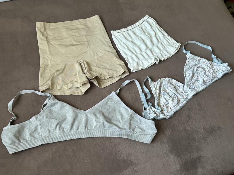 Продам в очень хорошем состоянии два бюстгальтера для кормления (дут примерно ко второму размеру груди) бесшовные утягивающие шортики (L-XL) и одноразовые трусики Tena (универсальный размер). Все идеальное, но на белых трусиках есть небольшая желтенькая пятнышка. Выводить не пробовала. И на серном бюстгальтере на лямках из-под низа есть катышки. Фото недостатков есть в объявлении. ‼️🎁У ПОДАРУНОК МОЖУ ЩЕ ПОСТАВИТИ БАНДАЖ ДЛЯ ВАГІТНОЇ.🤰🏼 🚛Отсылаю по любой почте.