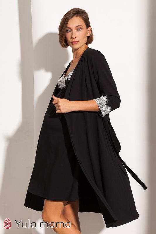 Комплект maya nw-3.1.6 черный для беременных и кормящих халат + ночная сорочка