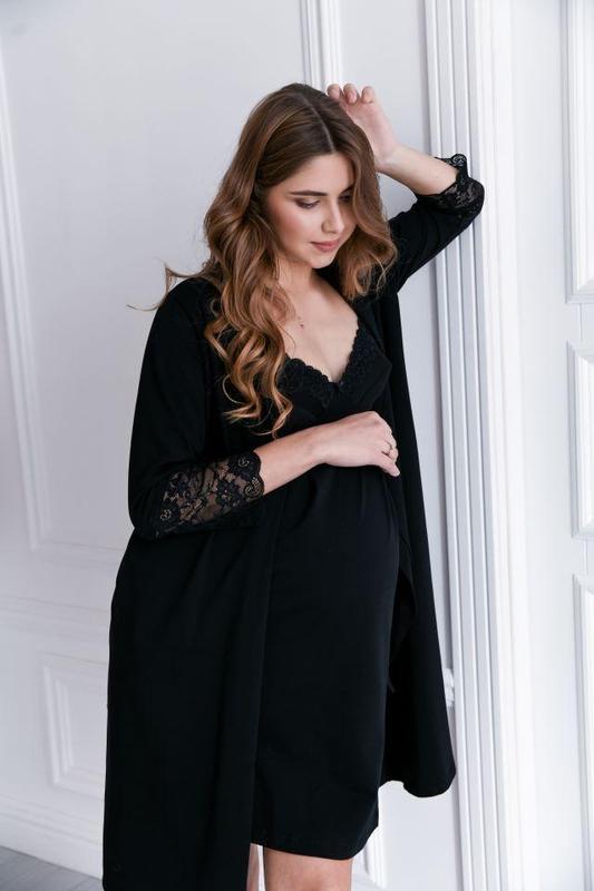 Комплект халат + ночная сорочка для беременных и кормящих, черный