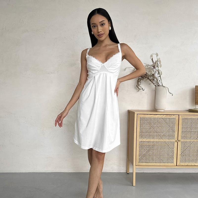 Ночная сорочка на эластичных бретелях из хлопкового трикотажа для беременных и кормящих мам. Специальный крой чашек обеспечивает максимальную поддержку груди во время сна, отдыха и кормления малыша. Кружевная отделка подчеркивает линию декольте. Размеры: XS, S, M, L, XL Состав: 95% хлопок, 5% эластан Производитель: Украина