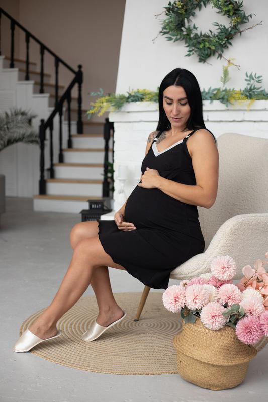 Стильная и сдержанная рубашка на бретелях, украшенная белым кружевом. Рубашка имеет клипсы для кормления и мягкую резинку под грудью, чтобы удобно было животику во время всего периода беременности. После родов рубашка также прекрасно будет садиться за счет своей уникальной форми, додали фото. 100% бавовна Уход: стирка на 30-40 градусов деликатный режим, не максимальный отжим.