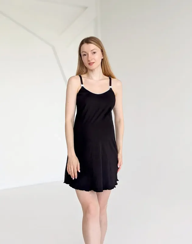 Рубашка со специальными клипсами, для легкого вскармливания малыша. Отлично подходит для любого срока беременности и после родов. Детали: тонкие бретельки с регулятором длины, клипсы для ГВ, А-силуэт. Размеры: 42-44, 46-48, 50-52, 54-56, 58-60 Материал: 95% хлопок 5% полиэстер