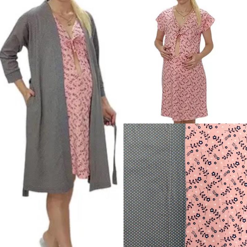 Комплект из хлопкового трикотажного полотна халат рукав 3/4 и ночная рубашка. Размер; 44-54 Тканина: 100% бавовна. Размеры: 44-54