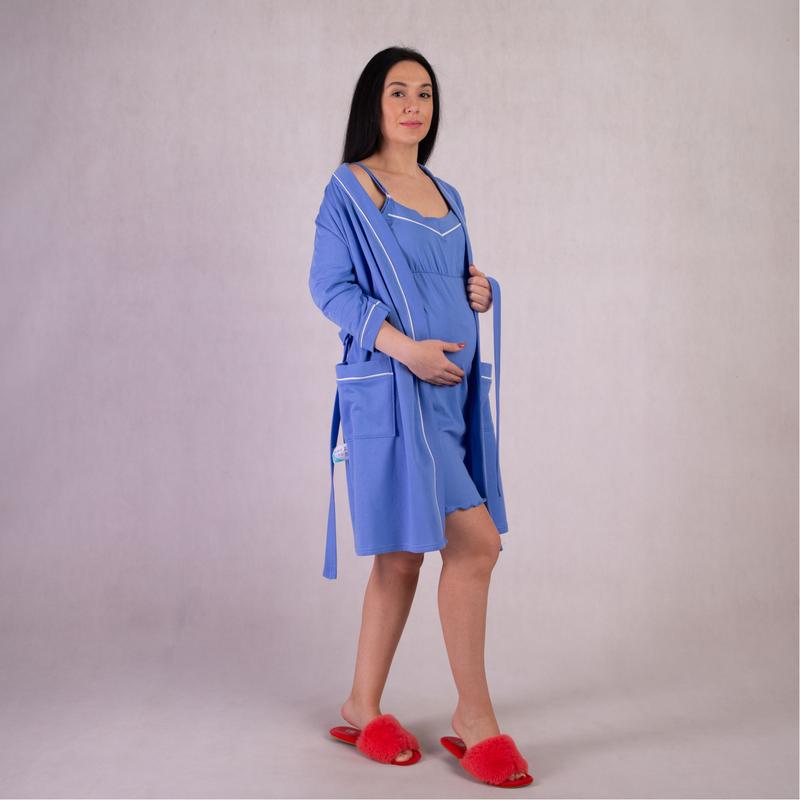 Теплый комплект ночная с халатом для беременных и кормящих