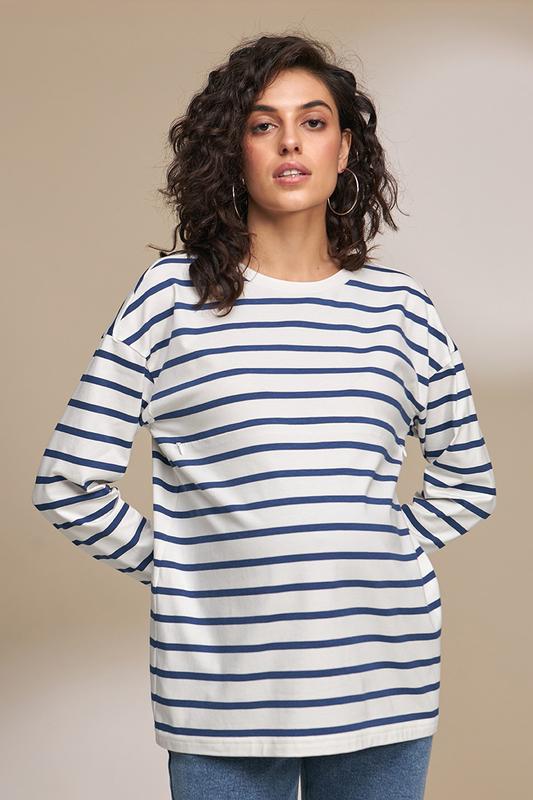 Лонгслив для беременных и кормящих nikita молочный в синюю полоску