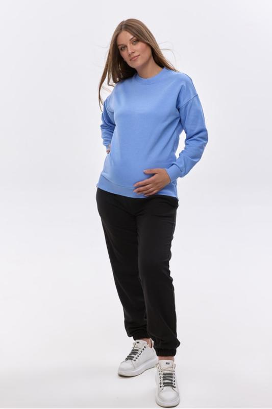 Свитшот создан для того, чтобы подарить будущим мамам и кормящим мамам максимум комфорта в любой день. Благодаря продуманному свободному крою, он подходит на различные сроки беременности и не ограничивает движений. Мягкий и приятный на ощупь материал обеспечивает комфорт как дома, так и во время прогулок. Практичный дизайн позволяет легко сочетать свитшот с джинсами, леггинсами или брюками, создавая стильные и удобные образы. Эта модель станет универсальной базой в вашем гардеробе, ведь сочетает в себе современный стиль, качественную ткань и функциональность, необходимую для мам в период беременности и кормления. Материал (ткань) Трикотаж 3-х нитка Состав 100% бавовна. Цвет Темно-голубий Ширина готового изделия (размер М) грудь - 108 см Длина рукава (размер М) от шеи 71 см Длина измеряется от верхней точки плеча до низа изделия. 68 см