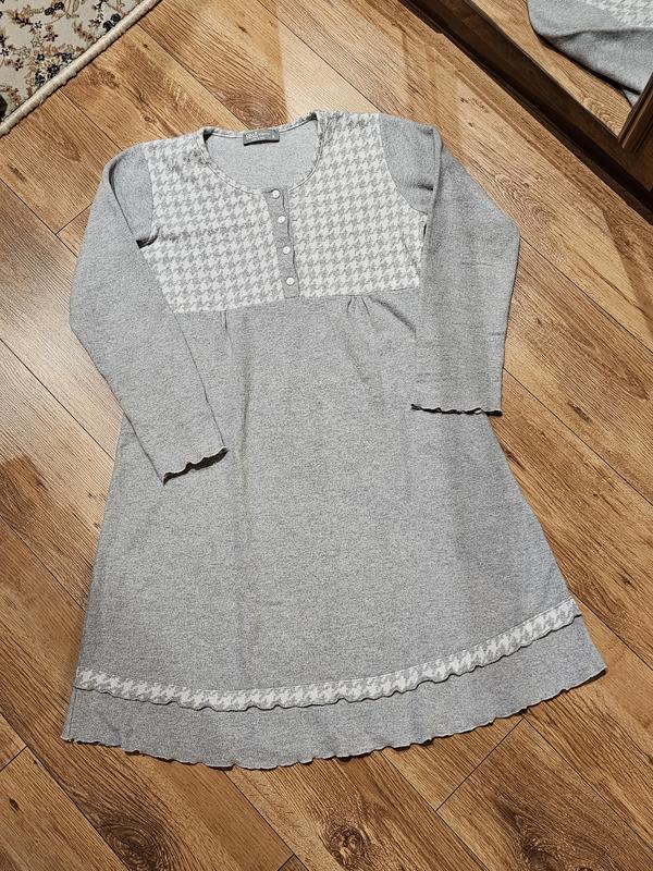 сукня в чудовому стані, дуже приємна до тіла і тепла. підійде вагітним за рахунок того, що юбка пришита з-під грудей, і є маленькі складочки під ними. і після пологів зручно бо є застібка на грудях. можна використовувати як теплу нічну сорочку, або зручну сукню в пологовому.