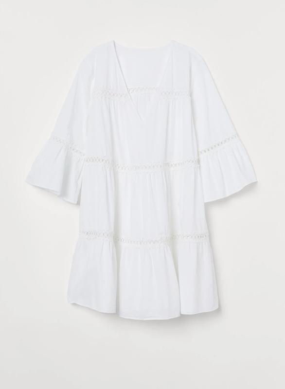 Платье от Н&М из воздушной хлопковой ткани белого цвета, рукав 3/4. Можно на пляж. Классно беременным. Стан идеален, без нюансов. Замеры на фото Учтены комиксия шкафа