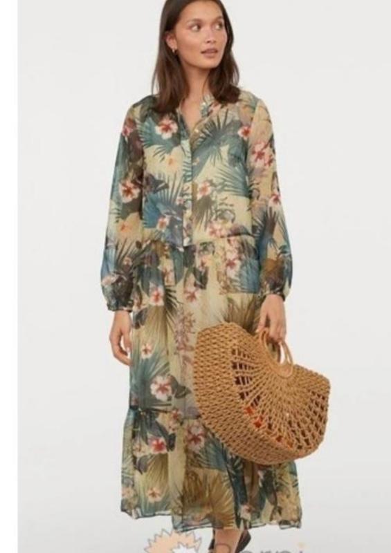 Легкое шифоновое платье макси длинное платье в цветы и пальмы этно бохо h&m новое сток