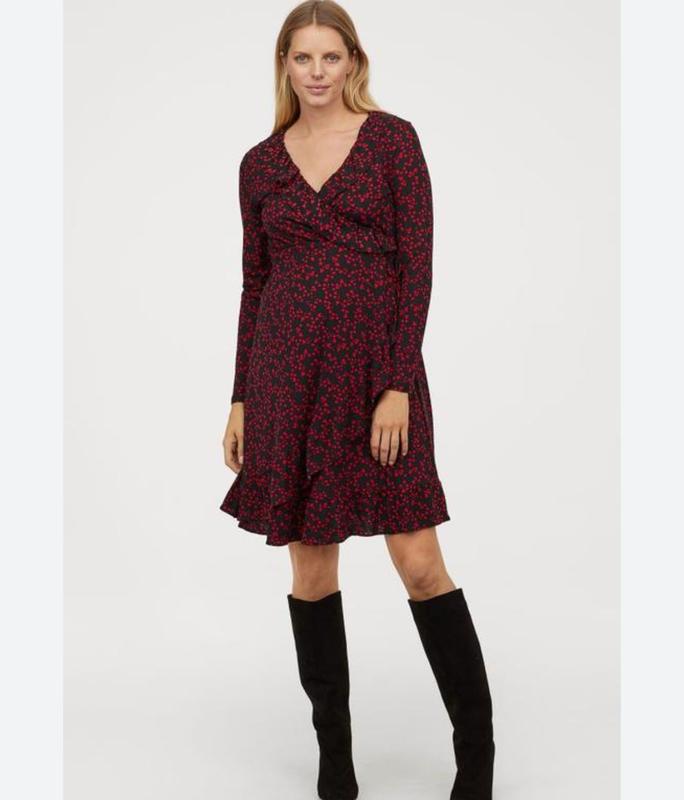 Стильное платье из вискозного джерси с принтом в сердечки от бренда h&m mama.