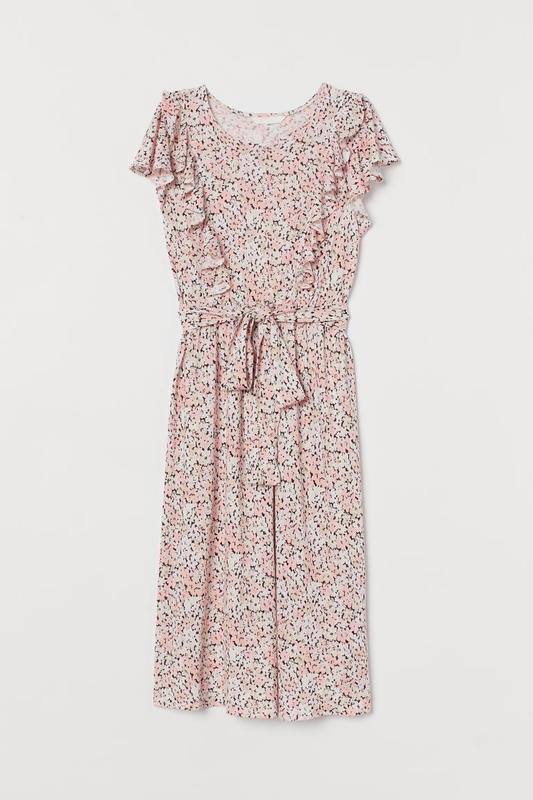 Розмір Xl(Довжина 100 см,пог 54 см(до 58 см тягнеться) поб 60 см.) Сукня довжиною до коліна з ніжного віскозного трикотажу. Кругла горловина, рюші вгорі та рукави-метелики. Шов на талії з вузьким прихованим еластичним поясом, що знімається.