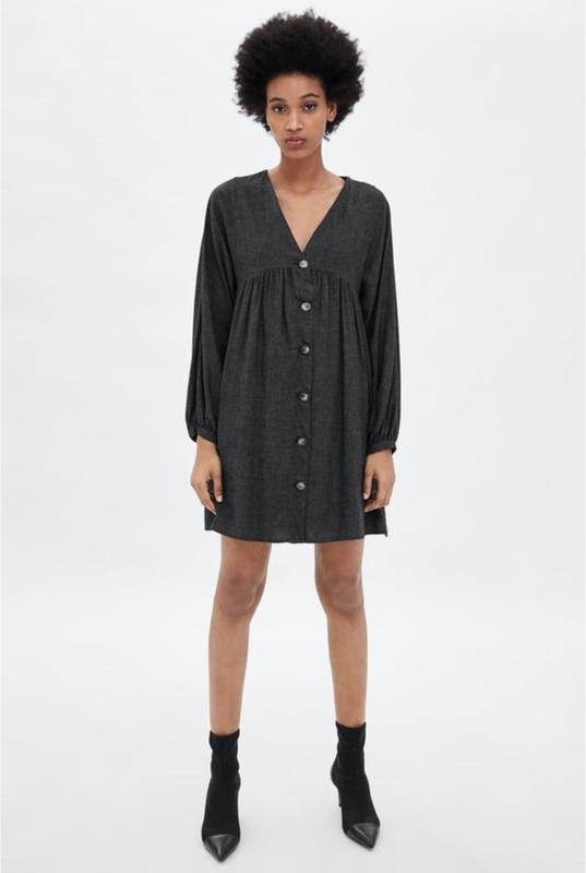 Стильное теплое платье-платье Zara. V-образный вырез, стильные пуговицы - расстегиваются по всей длине (есть запасные). Есть плотная подкладка по всей длине. Скрытые боковые карманы. Ткань с легкими ворсинками, очень приятная к телу. Опущенная линия плеча. Длина по спинке - 83см ПОГ -47см талии просто не имеет 😉😉 ПОБ - 75см