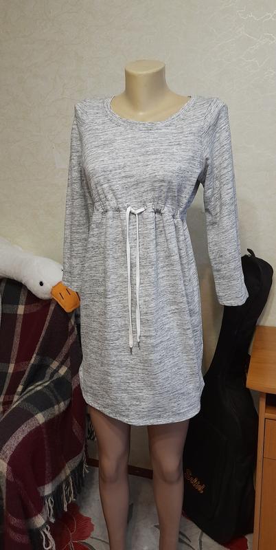 # 55 смягкое, удобное повседневное платье для будущей мамы. Под грудью стягивается на шнуровку. Стан хороший. Размер S/M Ширина плечей 33 см Полуобхват груди 48 см Полуобхват бедер 51 см Длина рукава 52 см Длина 82 см