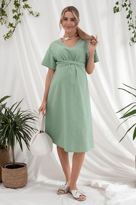 Літня сукня для вагітних і годуючих довжини міді з жатої бавовни. Силует: напівобтислий ліф, вільна спідниця-дзвіночок, об'єм регулюється поясом. Стиль: повсякденні. Секрет годування: потаємні блискавки в нагрудних рельєфах. Тканина: жата бавовна з текстурою під льон. Розтяжність тканини: тканина не тягнеться 0 %. Колір: фісташка. На фотографії: розмір на моделі S, об'єм грудей 90 см, стегон 96 см, зріст 175 см. Орієнтовні заміри готового виробу: S: Довжина по спинці 108 см, Довжина рукава від горловини 32 см, Груди 98 см, Талія 102 см, Стегна 118 см. M: Довжина по спинці 109 см, Довжина рукава від горловини 32,5 см, Груди 103 см, Талія 107 см, Стегна 122 см. L: Довжина по спинці 110 см, Довжина рукава від горловини 33 см, Груди 108 см, Талія 112 см, Стегна 127 см. ХL: Довжина по спинці 111 см, Довжина рукава від горловини 33,5 см, Груди 113 см, Талія 116 см, Стегна 132 см. ХXL: Довжина по спинці 112 см, Довжина рукава від горловини 34 см, Груди 118 см, Талія 120 см, Стегна 137 см. Усадка виробу по довжині після першого прання - 1 - 1,5 см. Усадка виробу по ширині після першого прання - 2 - 3 см. Матеріал: 100% Cotton.