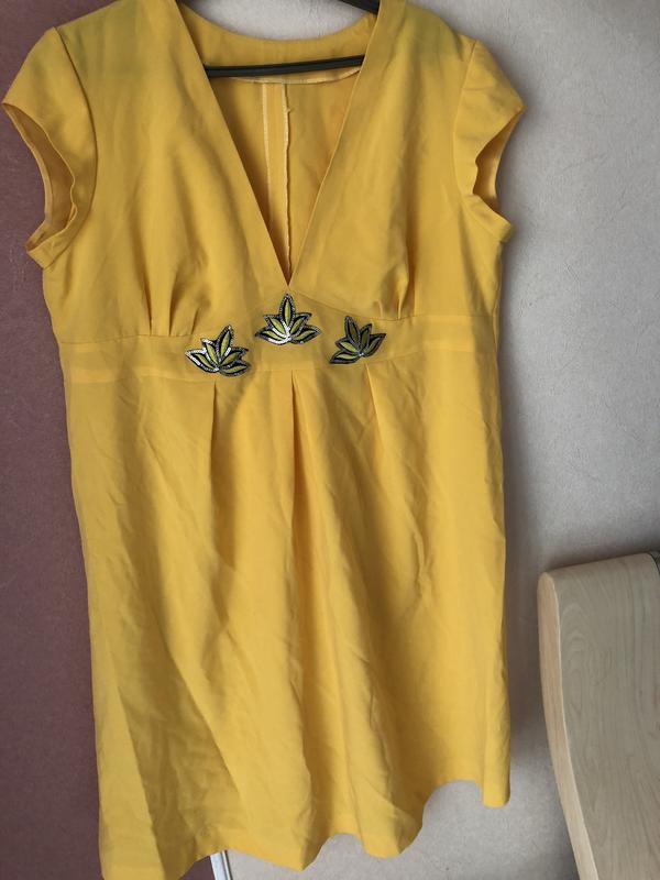 ПОГ-56 Под грудью 54, ткань тянется Длинна-98 Платье шито на заказ, есть пару чёрненьких точек по ткани, их почти не заметно и в глаза не бросаются, изначально были на ткани . Надо подутюжить, было одето один раз .