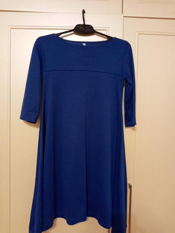Продаю своё платье, одевала пару раз беременной. Крой расклешонный, подол неровный - бока удлинённые. Есть небольшой нюанс - строчка на одном рукаве пару сантиметров выпоролась, на последнем фото показала. Длина платья посредине 87 см Длина рукава 37 см (3/4) ПОГ 40 грн ПОБ 60 грн