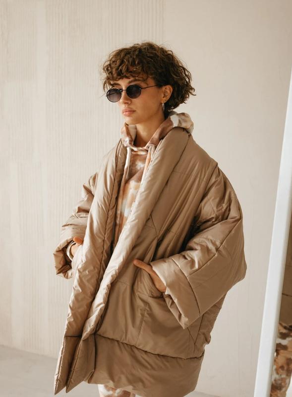 Є НЮАНС! Куртка кімоно (трансформер) наповнювач синтепух 100. На будь які параметри! Фасон вільний. Достатньо легенька, але гарно зберігає тепло і не продувається. В топі продажів вже котрий сезон. Дуже практична, зручна в носінні. Розмір універсальний - оверсайз фасону. Є шнурочок - можна регулювати висоту завʼязування, за рахунок цього куртка прекрасно підійде також і вагітним. Колір : трендовий карамельний. Тканина : плащівка. Можна носити двома сторонами. Куртка нова з біркою, але є нюанс, тому ціна набагато знижена, старт цін на ці куртки від 3 тис грн ! (Можна виправити в ателʼє цю затяжку, нюанс НЕ в тканині, а в нитці, дивіться фото 5-6! ). Відправляю по передоплаті 150 грн новою поштою/ укрпоштою. Приємних покупок!