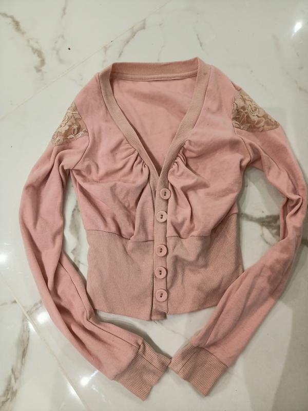 Ніжно рожевого кольору, Балеро. З кружевними вставками на плечах.