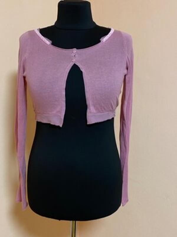Коттоновая кофточка размер М указан, демонстрировано на манекене 52 размера. Длина - 31см, плечи - 36см, рукав от плеча - 68см, пог - 50см.