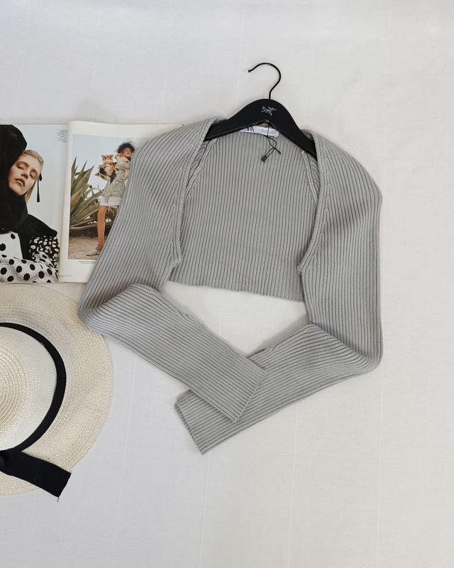 🌿серое болеро рубчик от Zara красиво тянется, ткань 66% вискоза, 34% полиамид Размер:L, подойдет и для М Замеры:ПО груди 35 см, длина 30 см, рукав от горловины 74 см