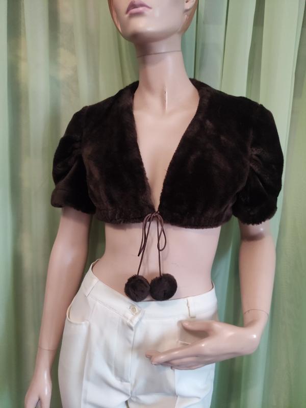 Хутряне болеро " Million dollars baby," 896 12, 100% adрил, подкладка - полиэстер. Длина изделия 33 см, по полукруг груди 48 -50 см, ширина плеч 41 см.
