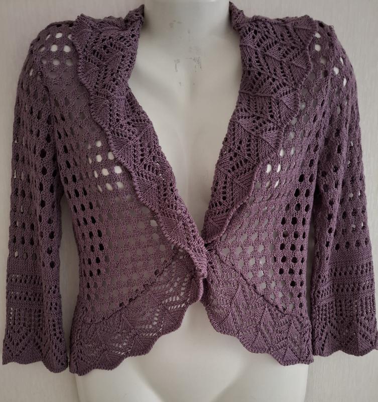 Кофтинка-болеро,вязка крючком.,можна як пончо,,як накидка укороченная, воротничок Размер:М(44/46) Плечи-38 Пог-44 Пот-42 Рукав-47 Длина-47 90%акрил 10%нейлон