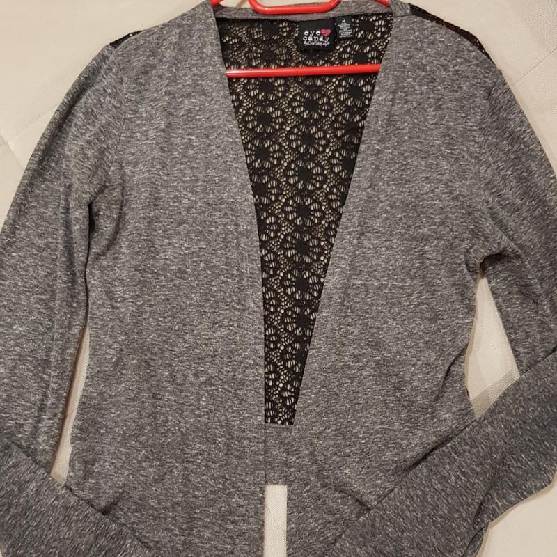 Чудова кофтинка сірого кольору розміру М ( але я б сказала S) з оригінальною спиною. Купувала доньці в Німеччині. Носила в школу. Продаю, бо чищу шафи. Висота по спині 48 см, ПОГ 42 см, довжина рукава по плечу 60 см ( по внутрішньому шву 46 см). Made in Kenya.
