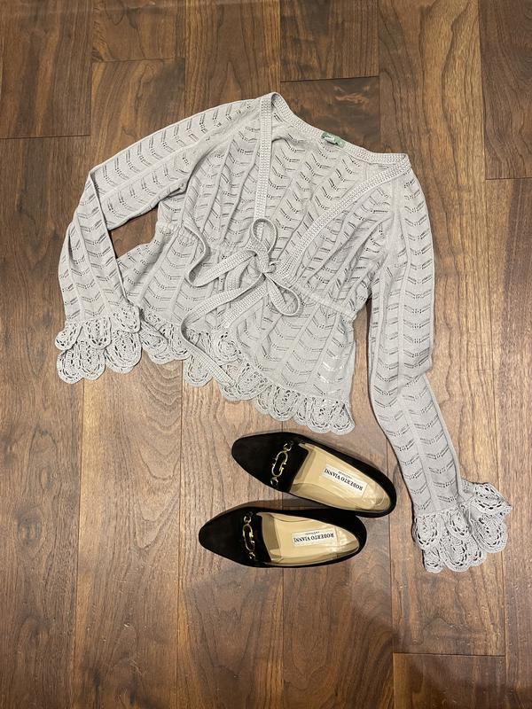 Супер жіночна і мила дизайнерська кофточка на зав'язці. Колір шафран. Довжина рукава від горловини - 69 см. Довжина - 51 см