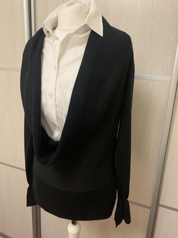 Цікавий джемпер німецького бренду Passport. Чорного кольору, 50% вовна мериноса. Красиво виглядає під білу блузку. Стан відмінний, у використанні був пару раз, більше висів у шафі. Вказаний розмір 38, підійде на розмір M-L. Виміри за запитом. Обмін і повернення не передбачено.