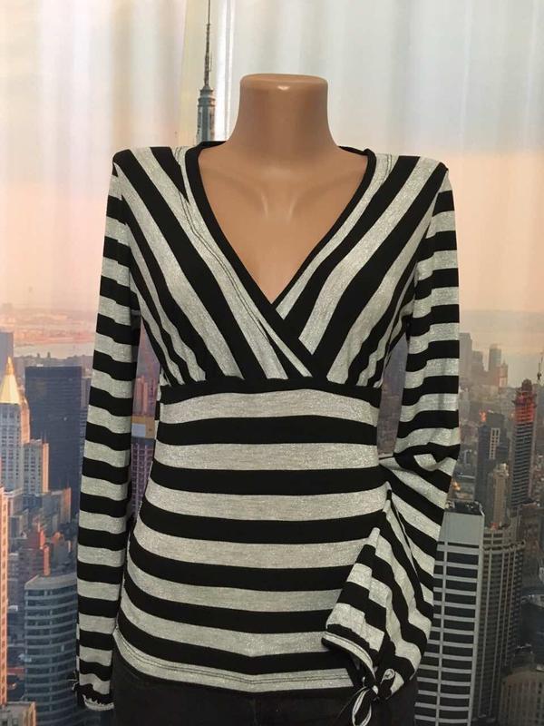 джемпер ,блуза, в полоску серебристая с черным, красивый рукав, сидит и смотрится отлично, размер 36 / 8 / S ткань с эластаном,тянется, замеры напишу,
