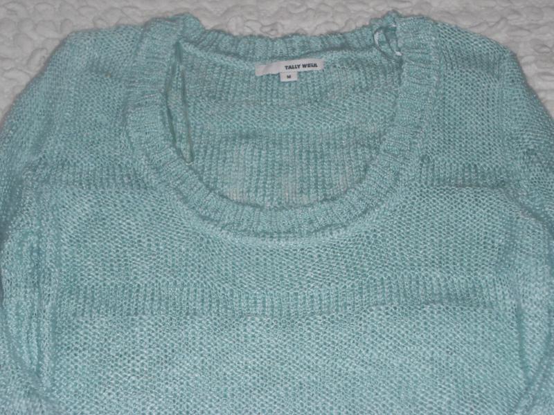 Приємний,мякий колір.Стан без ньюансів.Кофта ледь прозора.Довжина 70см,рукав 58см.