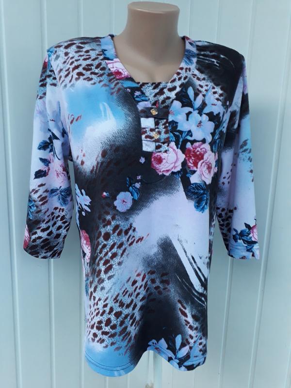 Яскрава, тонка трикотажна кофта в дуже хорошому, майже ідеальному стані. Плечі 41см, пог 54см, пот 52см, поб 56см, довжина 65см, рукав від плечового шва 45см. Заміри в спокійному нерозтягненому стані. .7.10.