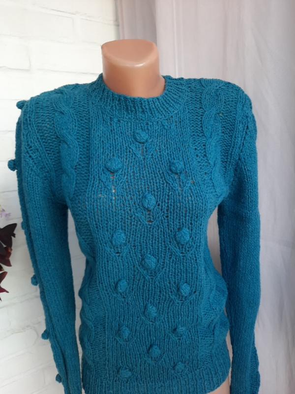 Стильний джемпер ручної роботи, акрил 50%,вовна (шерсть)50%,трохи колеться,для чутливої шкіри не підійде,ПОГ-42 см, тягнеться, довжина виробу -65 см, довжина рукава -71 см, ззаду по плечах 35 см, без недоліків, новий