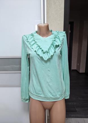 Бірюзова кофта-блуза Тканина під штучний замш, тягнеться Розмір С Стан ідеальний Орієнтуватися по замірах від підмишки до підмишки до 44-45 пот 45 довжина 55 довжина рукава від плеча 62 Акція 1+1=3 Заходьте на мою сторінку, при купівлі 2 речей - 3 ( за найменшою ціною) в подарунок. За запитом зроблю уточнені додаткові заміри і фото. Оплата/доставка: 1) 100% на карту. 2) післяплатою за мінімального авансу (за доставку). 3) "безпечна оплата" Шафа. Доставка Новою поштою, Укрпошта. Для замовлення додаткових питань пишіть у вкладці під товаром "написати продавцю"