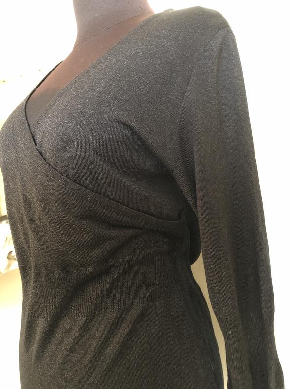 Фото не передає всіх переваг цієї речі. Дуже гарний матеріал насиченого чорного кольору різної щільності . Довжина 68 см, ПОТ 42-48 см, ПОГ 48 см.