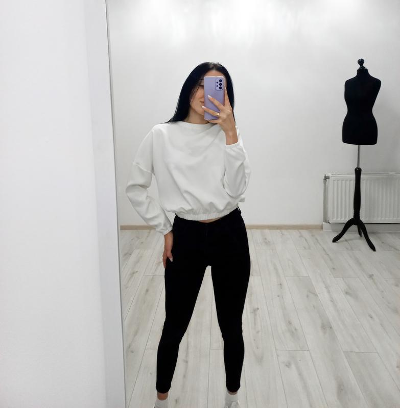 В наявності вкорочена кофта ▫️тканина костюмна молочна ▫️горловина обшита кашкорсе, низ та манжети на ризинці ▫️розмір s Ціна 350