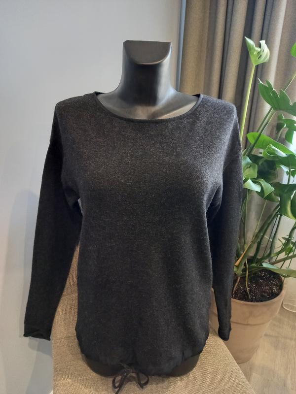 Кофта цвет темно-серый.Качество хорошее,мягкое и приятно к телу.Длина 64см.Пог. 50см.рукав с не большим манжетом от горловины 71см ,рукав по внутреннему шву 48см.Низ кофты на кулисе. Размер S-М.