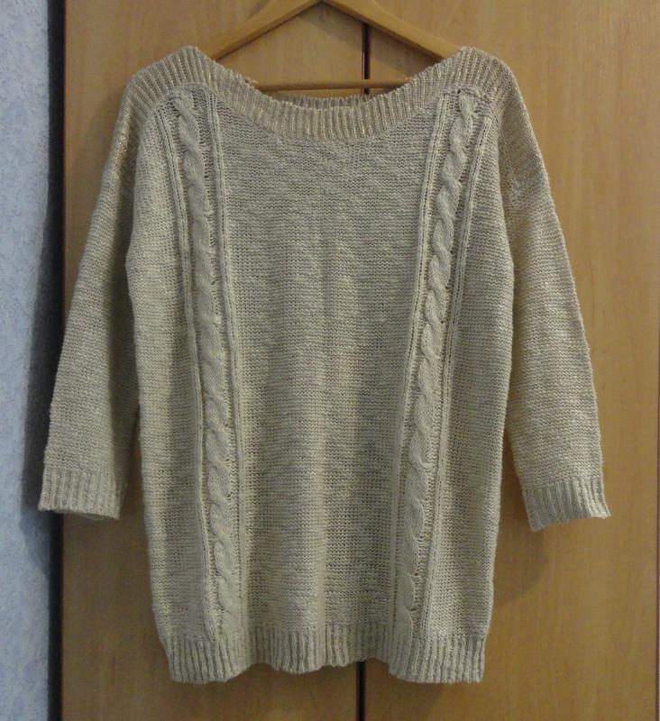 Стильний, люксовий джемпер в ідеальному стані. Розмір 46-50, дивіться мірки. Мірки : ПОГ 54 см., довжина по спинці 68 см, довжина рукава від горловини 58 см. Склад тканини: бірка зрізана, схоже акрил.. Відмінна якість, приємна м'яка тканина, Ви залишитеся задоволені покупкою!