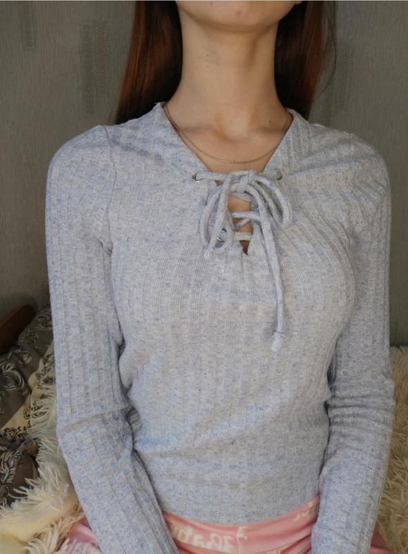 Серая кофточка в рубчик с шнуровкой на груди джемпер свитер шнуровка 46 48 распродажа