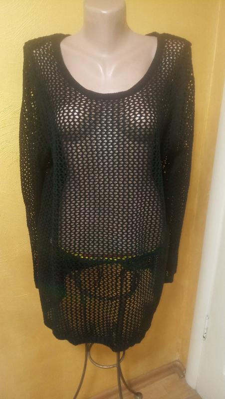 Напів о.г.-59; напів о.т.-58; ширина плечей -42; напів о.с.-65; довжина рукава -68; довжина перед -76. Стильний джемпер,з трикотажу у сітку,під який можна вдягнути різноманітний одяг ,на любу вашу фантазі
