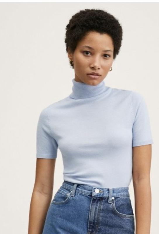 Стильная женская водолазка с коротким рукавом, голубая. Размер -М Pull & bear