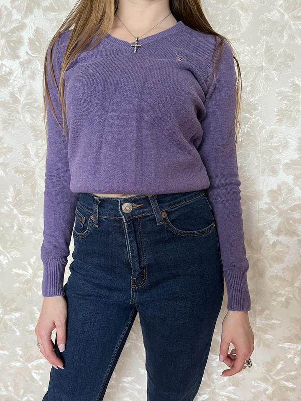 Джемпер Gant фіолетового кольору із цупкої тканини, 100% хлопок, дуже красиво виглядає на фігурі, тканина чудової якості, не кошлатається, виглядає дуже красиво Розмір по бірці - xs Джемпер тягнеться, заміри у нерозтягнутому вигляді Пог - 42 см Пот - 39 см Резинка - 31 см (тягнеться сильно) Довжина по спині - 54 см Довжина рукава - 59 см Плечі - 33 см