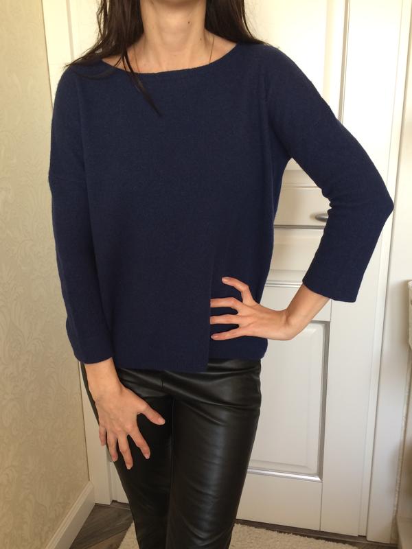 Кашемировый синий джемпер. Одет на девушку рост 167 фигура 92х74х98 см, маловат.