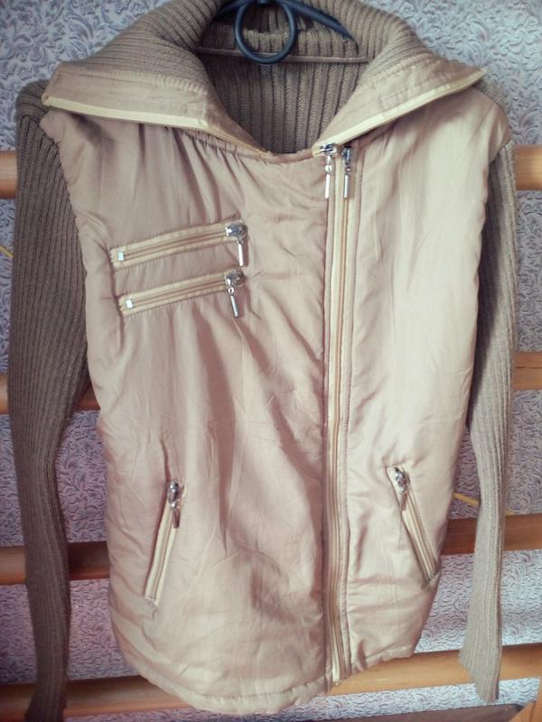 Коричнева Кофта Заміри: Ширина Плечей - 39 див. Об'єм Грудей - 39 див Довжина Кофти - 54 см. Довжина Рукава - 56 див Довжина Кофти з коміром - 69 див. Спереду дві кишені. Стан відмінний. Є невеликий дефектик, правий кишеня всередині прорвався. Балон не тягнеться, перед, а зад тканину і рукава трохи тягнуться