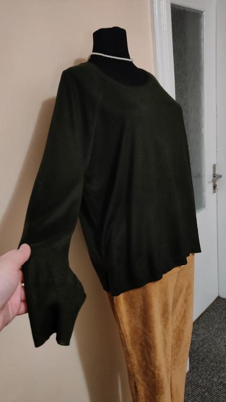 джемпер женский стильный тренд темно зеленый цвет Замеры: длина 58см, ПОГ 62см, ПОТ 64см, ПОБ 65см, рукав 75см.