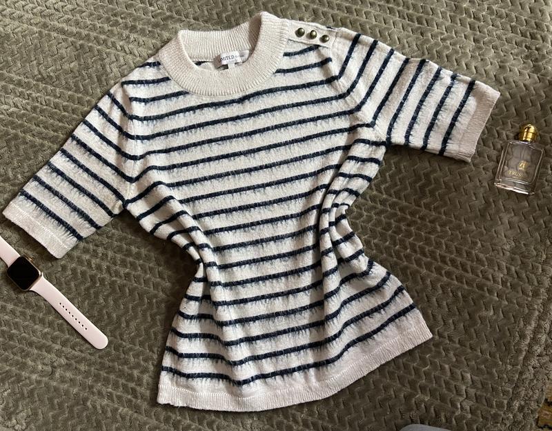 Ідеальна кофтинка джемпер. Склад: 52% ACRYLIC 34% POLYESTER 9% WOOL 5% MOHAIR Дуже тепла. Розмір С, підійде і на М. Ніяких недоліків не має, ґудзики ідеальні