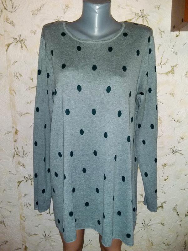 Размер указан 44/46, смотрите замеры. Ткань - трикотаж, средней плотности, хорошо тянется, 60% вискоза, 40% хлопок. Цвет серо - зеленый. Состояние очень хорошее. !!!!! Есть легкая кашлатость, не критически. длина от верхней точки плеча до низа 79. длина рукава от плеча 70, от горловины 81. полуобхват бицепса 16 тянется до 22. полуобхват груди 58 тянется до 72. полу охват талии 58 тянется до 72. полу охват внизу 71+ ширина между плечами швами 43. 61.