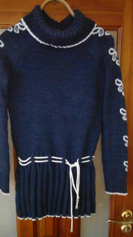 Темно синий цвет, очень мягкая и теплая. На талии затягивается
